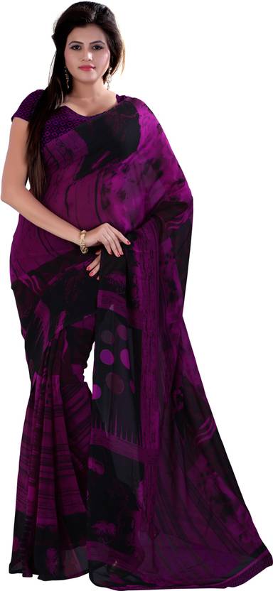 Jiya Self Design, Printed Bollywood Georgette Saree (Purple, Black)