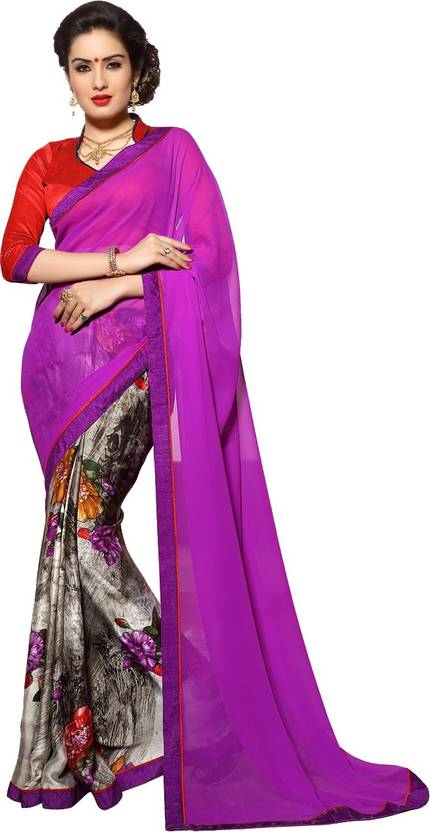 Jiya Presents Multi Color Printed Satin Chiffon Skirt & Purple Color Georgette Pallu Half & Half Saree With Unstitched Red Color Cotton Silk Blouse Piece. Having Absolute Great Designs. Charming Color Combination Makes It More Able. Ideal For Parties And Festivals. Our Sarees Are Designed And Stitched Using High Grade Fabrics And Yarns Under The Strict Surveillance Of Our Well-Versed Professional Associates.Colors may be minor vary from what was mentioned because of different screen resolution.(Saree Length-5.50 m Blouse Length-0.80 m Occasion-Formal,Casual)
