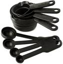 Set of 4 thick hard wearing black stackable measuring cups, with double pour sides perfect kitchen accessory. All come stacked together on a ring thumb rest on each handle sizes each cup has several different sizes from smallest to largest cup 1, 1/4 cup, 1/8 cup, 4 table spoons, 2 tablespoons cup 2, 1/2 cup, 1/4 cup, 8 tablespoons, 4 tablespoons cup 3, 2/3 cup, 1/3 cup, 10+2/3 tablespoons, 5+ 1/3 tablespoons cup 4, 1 cup, 1/2 cup, 1/4 cup, 16 tablespoons, 8 tablespoons, 4 tablespoons 4 stackable measuring spoons 1/4 teaspoon 1/2teaspoon 1 teaspoon 1 tablespoon. Box Contents: 1 set of 8 pieces measuring cup. * Perfect For Daily Kitchen Baking & Cooking Need, * Must Have Kitchen Product, * Prepare in Large or Small Quality, * All Size Cups & Spoon in 01 Pack * Soft Santoprene handles allow a strong comfortable grip, * Designed for both right- or left-hand use * Dishwasher safe. Hand wash recommended , * Excellent Food Grade Plastic Made * 08 Piece Set (4 Measuring Cups And 4 Measuring Spoons) In Different Gradated Sizes & Clearly Mentioned Size In Different Units on Each Cup & Spoon * Pack Contents : 04 Cups (30, 60, 120, 240 ML) & 04 Spoons (1/4, 1/2, 1 Teaspoon Size & 1 Tablespoon Size)