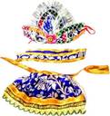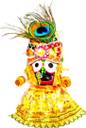 JJH Exclusive Lord Jagannath , Lord Balabhadra and Maa Subhadra idol dress for 8 inches. The dress are made on the basis of traditional colour that is Yellow , Blue and Red . Floral design are made on the dress with Golden and white glossy treads . The Mukut of Lord Jagannath has a Peacock feather and A White feather on The Mukut of Lord Balabhadra . The entire product contains 3 dresses , 3 Mukuts and 3 Churnis.