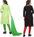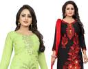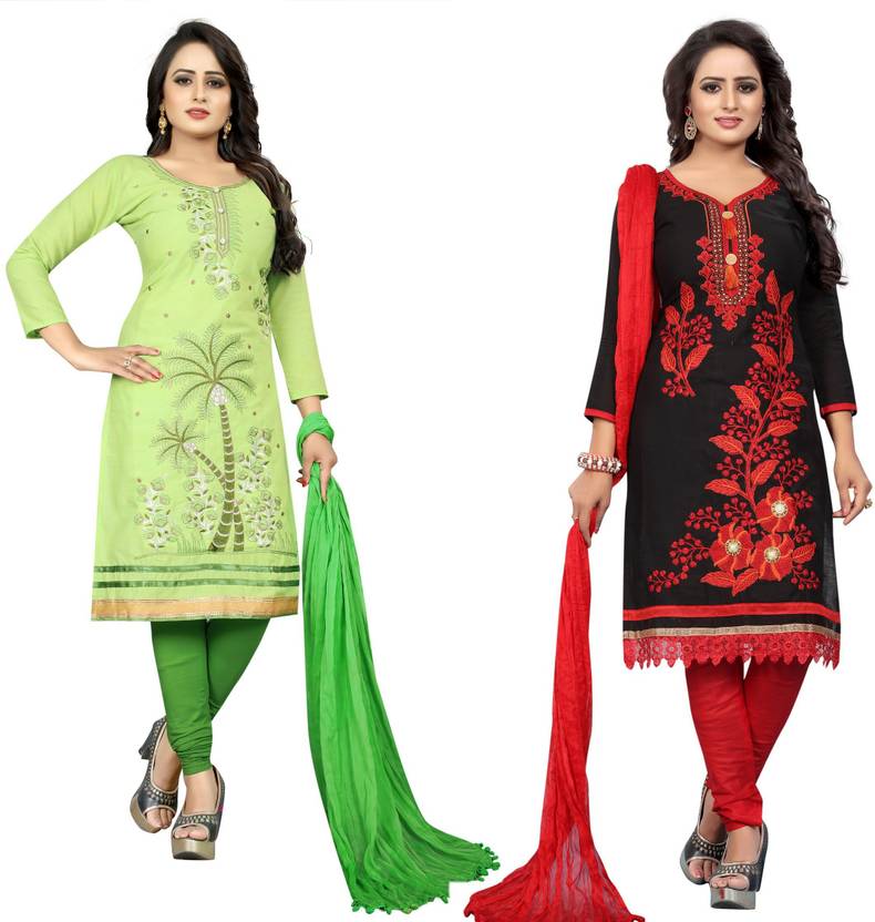 Semi Stitched Cotton Kurta & Churidar Material Embroidered, Solid