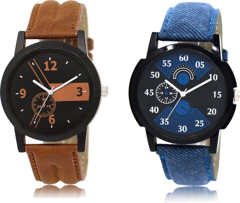 jk lifestyle LR 01 & 02 Analog Watch - For Boys BLUE AND BROWN LEATHER BELT WATCH FOR MAN NEW ARRIVAL FAST SELLING TRACK DESIGNER WATCH FOR PARTY_PROFESSIONAL_DIWALI_FESTIVAL SPECIAL WATCH FOR BOYS_GUYS Analog Watch - For Men