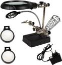 JM Helping Hand Magnifier Magnifying Glass LED Soldering Stand 2.5X 7.5X 10X Soldering Stand (Black)