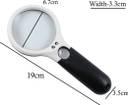 The lens has 22mm and 75mm.Lens Magnifying Power: 45X and 3X.Illumination: 3 LED lights.Light powered by 2 X AAA Batteries (Not Included).