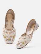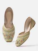 Enhance your ethnic look with JM Looks Women's Handcrafted Juttis, designed for elegance and comfort. These traditional mojaris feature intricate stone and bead embellishments, making them a perfect choice for festive occasions, weddings, and cultural events. The cushioned insole ensures all-day comfort, while the premium craftsmanship adds a touch of luxury to your outfit. Pair them with lehengas, sarees, or salwar suits to complete your traditional look.