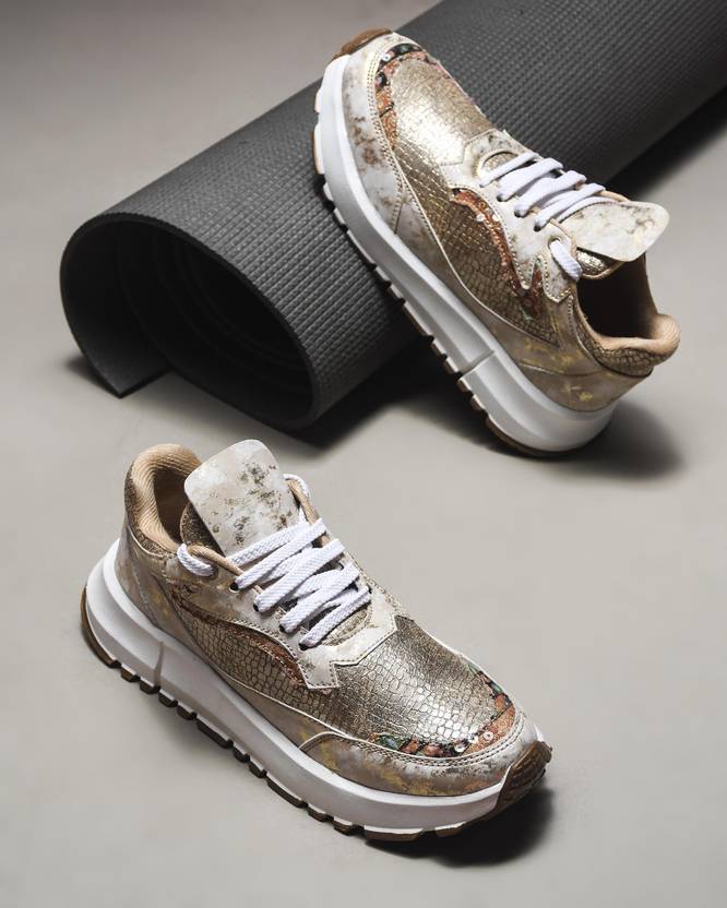 jm looks Women's Casual Chunky Shoes Sneakers Lace-up Shoes Sneakers For Women (Gold , 5)