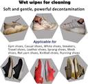 1.POWERFUL PREMIUM CLEANING SOLUTION: By using the combination of RO pure water and premium cleaning solution, This shoe wipes can effectively remove different sorts of marks, stains, and dirt that remain on your shoes. 100% skin safe. Shoes cleaner without any harmful chemicals to skin or fabric of shoes. Our wipes are comprised of a natural formula with a powerful detergent that effectively cleans your shoes and without removing color. 2.ONE-STEP CLEANING: JUST WIPE, NEED NO WATER: This cleaner quick wipes provide a faster, more powerful, and most convenient way to clean your shoes whenever you needs. Just simply wipe your shoes with shoe cleaner wipes , need no water and tissue, your shoes will be totally refreshed. cleaning kit 3.CONVENIENT & PORTABLE: The disposable wipes for shoes are put in well-designed bag with resealable cover which can keep the wipe always wet and lock in the moisture and keep them fresh. You can clean your whenever you want, camping, travel, office, car and so on. Portable for you to put in your pocket and handbag if you are outdoor. And perfect to place on home shoe rack, office drawer, and car to make sure you are meeting people with the best tidy and clean outlook. 4.SUITABLE FOR VARIOUS TYPES OF MATERIAL: The shoe cleaner are safe and effective to use on nylon, cotton, mesh, canvas, rubber sole whitener, synthetic material, and leather. A fresh scent without harsh chemicals that will not damage shoes. Suitable for different , white , sports shoes, sandals & slippers. Not for Suede Shoes.