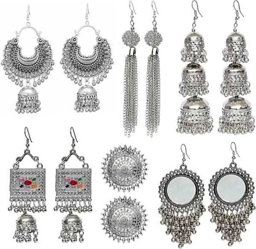 Silver Special Pair of 6 Designer Silver Oxidised Earrings Combo