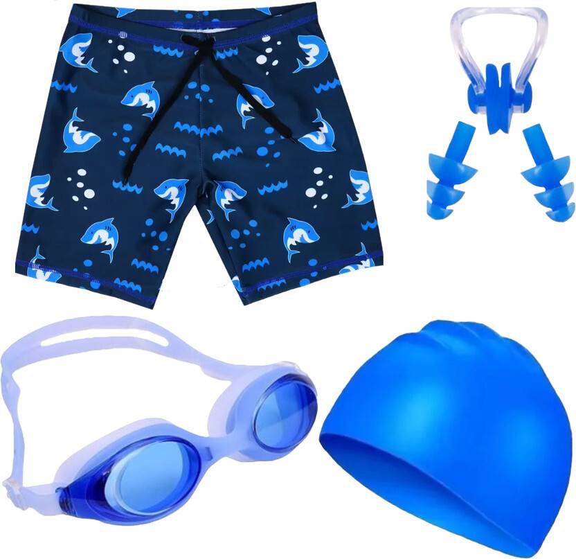 swimming costume for boys | Swimsuit for Boys , swimming kit for kids boys are Ideal for School and Casual Swimming. swimming cap for kids and swimming goggles for kids are designed for both indoor and outdoor swimming, protecting your eyes from chlorine without worrying about long hair. the swimming cap for kids is flexible so you can adjust it to a suitable size for perfect fit.it is made of high-quality silicone, which can be fit your head and protect your long hair. swimming goggle for boys has a high-quality lens can protect your eyes from UV rays and anti-fog coating ensure they will not steam up for a super clean view even in the low light.swim cap and goggles are designed for both indoor and outdoor swimming, protecting your eyes from chlorine without worrying about long hair.