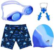 Swimming Kit With Cap Goggles Ear Nose Plug And Swimming Costume For Boys