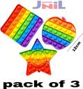 Rainbow Pop Fidget Toy Kids Silicone Square Rainbow Push Pop Bubble Fidget Sensory Toy Stress Relief Toy Fidget Toy Sensory Toys for Girls Boys The game fidget toys pop it is made of high-quality silicone. Pure color, non-toxic, tasteless, and excellent texture.FEATURES:- Relieve stress help restore the mood, home essentials, parent-child games, autism, games that the elderly, children, student, and adults can play. Endless Fun: Just press the mouse bubbles down and they make a slight popping sound; then flip it over and start again! Endlessly reusable and washable, too. Puzzle Game: Players take turns to press as many mice as they want in a row. The player who presses the last mouse will lose. It exercises children's thinking ability, which is very interesting. There are no loose or noise-making pieces, making it great for playing in a car, bus, or plane, in a restaurant or at school. It's also water-resistant, so you can play with it anywhere, even during bath time! Silicone Material: Made of high-grade Silicone materials, safe and non-toxic, Parents can rest assured, to buy for your children. SPECIFICATION Material: SiliconeWeight: 50gm/pieceProduct size: (12 cm *12 cm)Package include: (1 x Stress Reliever) The rules are simple and you can make your own. The basic rules of P two-player game, each player takes turns to press the raised mouse, the mouse can be pressed continuously, twice in a row.