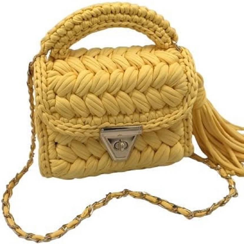 Women's Stylish Hand Knitted T-Shirt Yarn Crochet Handmade Crossbody