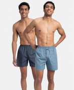 Jockey 1222 Super Combed Mercerized Cotton Woven Checkered Boxer Shorts with Back Pocket - Navy & Seaport Teal (Pack of 2). The minimal yet essential Modern Classic Collection never goes out of style. This soft and absorbent range is made to be worn again and again -everyday innerwear for every man. 100% Super Combed Mercerized Cotton Woven Fabric ,Fabric Composition : Cotton ,Ultrasoft and Durable Concealed Waistband ,Back Pocket ,Front Open Fly ,Label Free for All Day Comfort. Gentle wash 40C, Do not bleach, Do not wring, Tumble dry low, Medium iron, Medium iron, Do not dry clean, Wash inside out with like colours. Do not iron on label. This product comes in a variety of colours & checkered designs. Image shown here is for representation only. Actual colour & checkered design may vary.