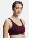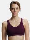 Jockey 1376 Wirefree Non Padded Super Combed Cotton Elastane Stretch Full Coverage Slip-On Active Bra with Wider Straps and Moisture Move Treatment - Wine Tasting. Created with just the right blend of functionality, style, and comfort, the Athleisure Collection is the perfect fit for workouts, travel, or just a relaxing night in. This range is designed for the woman who? always on the go. Super Combed Cotton Elastane Stretch Fabric ,Fabric Composition : Cotton and Elastane ,Full Coverage Slip-On Bra ,Wirefree and Non-Padded ,StayFresh Treatment with Antimicrobial Properties to Help You Stay Fresh Throughout the Day ,Moisture Move Treatment to Wick Sweat Away From the Body ,Double Layered Cups and Soft Bottom Band Helps Keep the Bust Firmly in Place ,Ultrasoft and Durable Underband ,Label Free for All Day Comfort. Hand wash, cold, Do not bleach, Do not wring, Drip dry in shade, Do not iron, Do not iron, Do not dry clean, Wash with like colours.