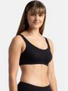 Jockey 1550 Super Combed Cotton Elastane Stretch Slip On Lounge Bra With StayFresh Treatment - Black. The Essence Collection is an everyday essential that provides all-day comfort and support. The right choice for the woman who needs innerwear she can count on in any situation. Super Combed Cotton Elastane Stretch Fabric ,Fabric Composition : Cotton and Elastane ,StayFresh Treatment with Antimicrobial Properties to Help You Stay Fresh Throughout the Day ,Slip-On ,Double Layered Moulded Cups ,Label Free for All Day Comfort. Gentle wash 40C, Do not bleach, Do not wring, Tumble dry low, Do not iron, Do not iron, Do not dry clean, Wash with like colours.
