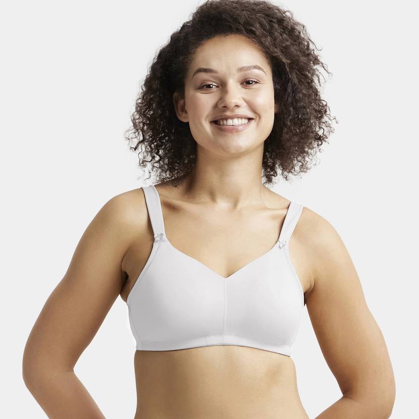 Jockey 1841 Wirefree Non Padded Soft Touch Microfiber Elastane Stretch Full Coverage Minimizer Bra with Broad Cushioned Fabric Strap - White. Soft Touch Microfiber Elastane Stretch Fabric ,Fabric Composition : Nylon and Elastane ,Full Coverage Bra ,Wirefree and Non-Padded ,Broader Cushioned Fabric Strap at Front for Added Comfort ,Soft and Flexible Reinforced Side Support Provides Better Hold and Smoothening ,Soft Inner Layer for Better Support and Shape ,Label Free for All Day Comfort ,Based on the Size Band Of the Bra, the Number Of Hook and Eye Varies for Better Support. Hand wash, cold; Do not bleach; Do not wring; Drip dry in shade; Do not iron; Do not dry clean; Wash with like colours;