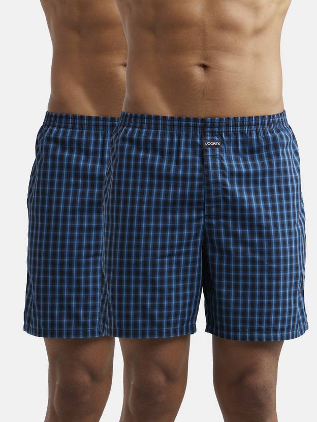 Jockey 1223 Super Combed Mercerized Cotton Woven Checkered Boxer Shorts with Side Pocket - Seaport Teal & Black(Pack of 2). The minimal yet essential Modern Classic Collection never goes out of style. This soft and absorbent range is made to be worn again and again -everyday innerwear for every man. 100% Super Combed Mercerized Cotton Woven Fabric ,Fabric Composition : Cotton ,Ultrasoft and Durable Concealed Waistband ,Convenient Side Pockets ,Front Open Fly ,Label Free for All Day Comfort. Gentle wash 40C, Do not bleach, Do not wring, Tumble dry low, Medium iron, Medium iron, Do not dry clean, Wash inside out with like colours. Do not iron on label.