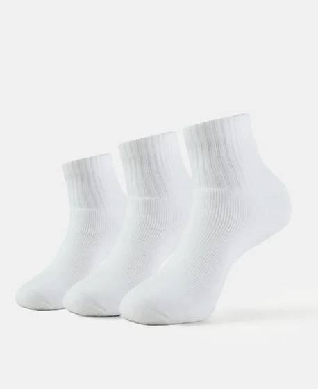 Jockey 7106 Compact Cotton Elastane Stretch Ankle Length Socks With StayFresh Treatment - White (Pack of 2). 0 Compact Cotton Stretch Fabric, Fabric Composition : Cotton, Nylon and Elastane, StayFresh Treatment with Antimicrobial Properties to Help You Stay Fresh Throughout the Day, Full Body Stretch. Gentle wash 40C, Do not bleach, Do not wring, Flat dry in shade, Do not iron, Do not dry clean.