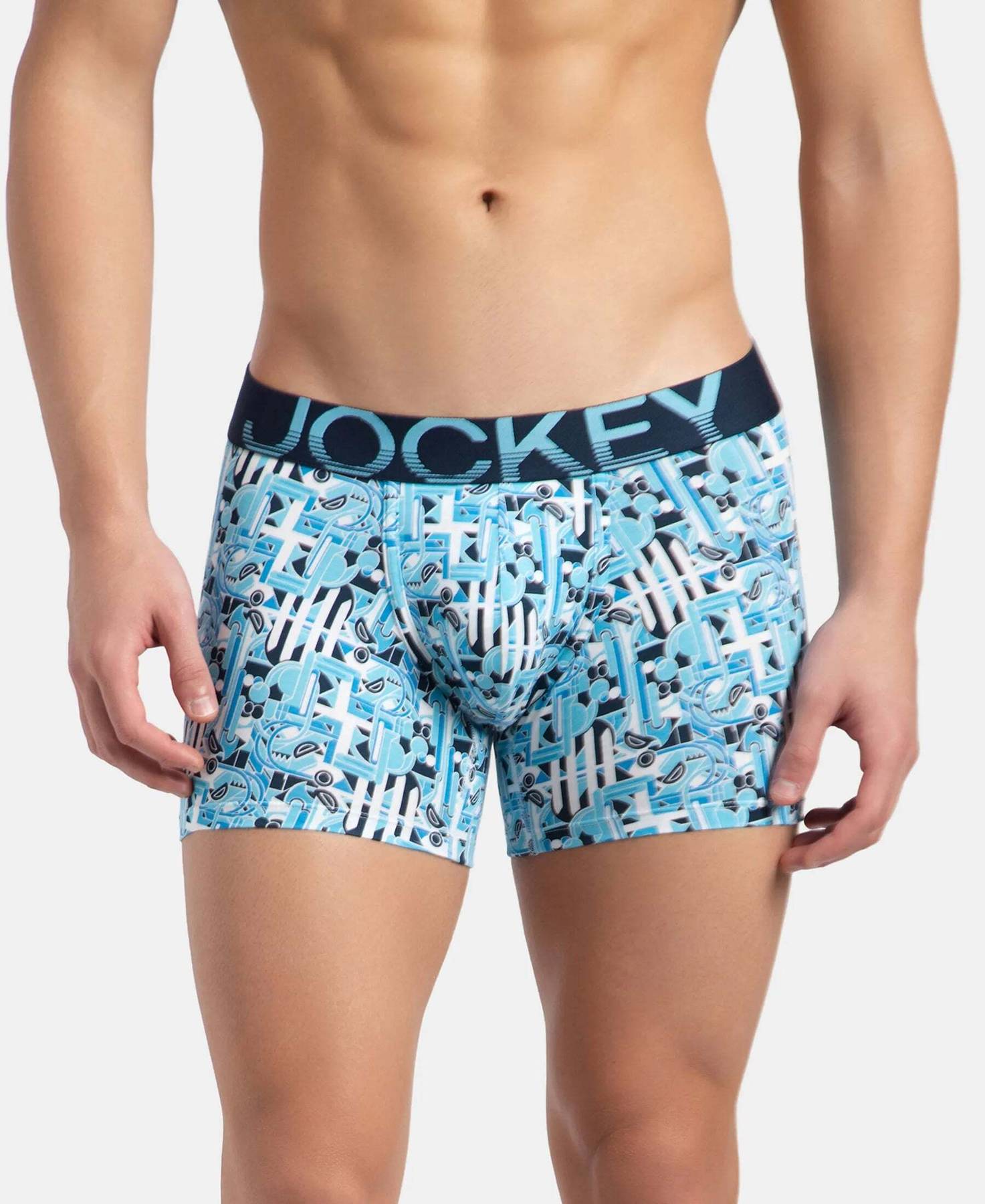 Jockey FP23 Super Combed Cotton Elastane Stretch Printed Trunk with Ultrasoft Waistband - Navy Blue Grotto. Bright neon colours dominate this range with designs that wont be missed from a mile away. The Pop Colour Collection is tailor made for the man who marches to the beat of his own drum. Super Combed Cotton Elastane Stretch Fabric, Fabric Composition : Cotton and Elastane, Engineered to Prevent Ride Up, Ultrasoft and Durable Waistband, All Over Print Design, Label Free for All Day Comfort. Gentle wash 40C, Do not bleach, Do not wring, Tumble dry low, Do not iron, Do not dry clean, Wash inside out with like colours. Do not iron on label. This product comes in a variety of Prints. The pattern shown here is for representation purpose. The product delivered may not be of the same pattern/print.