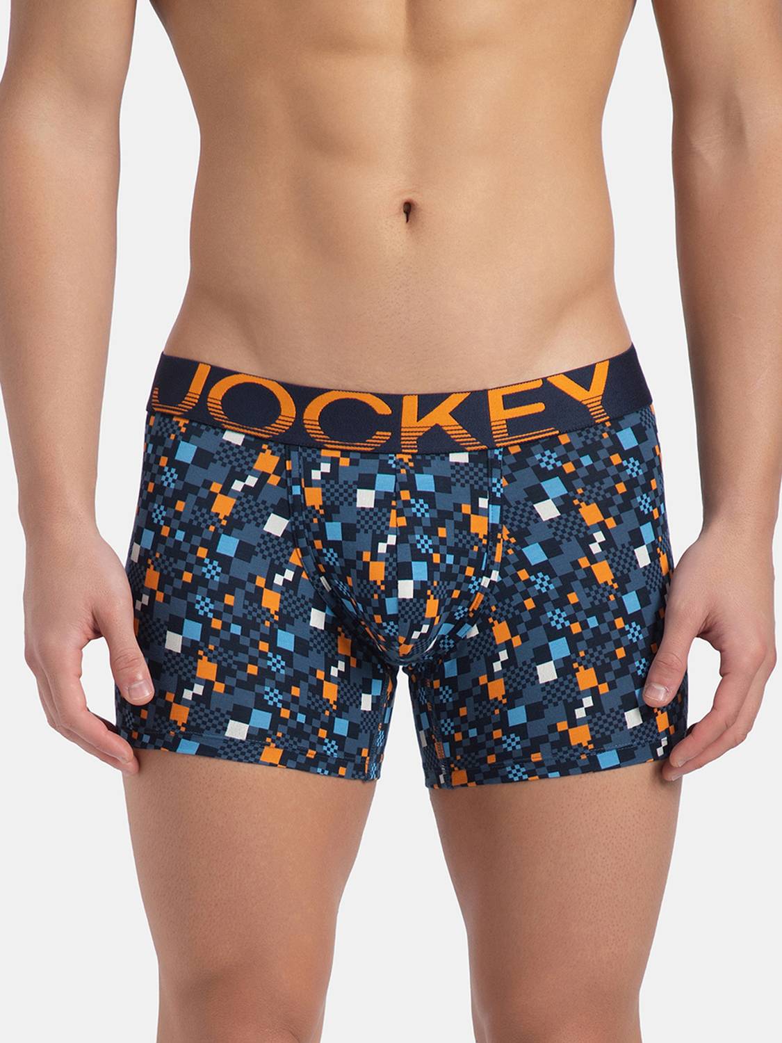 Jockey FP23 Super Combed Cotton Elastane Stretch Printed Trunk with Ultrasoft Waistband - Navy Autumn Glory. Bright neon colours dominate this range with designs that wont be missed from a mile away. The Pop Colour Collection is tailor made for the man who marches to the beat of his own drum. Super Combed Cotton Elastane Stretch Fabric, Fabric Composition : Cotton and Elastane, Engineered to Prevent Ride Up, Ultrasoft and Durable Waistband, All Over Print Design, Label Free for All Day Comfort. Gentle wash 40C, Do not bleach, Do not wring, Tumble dry low, Do not iron, Do not dry clean, Wash inside out with like colours. Do not iron on label. This product comes in a variety of Prints. The pattern shown here is for representation purpose. The product delivered may not be of the same pattern/print.