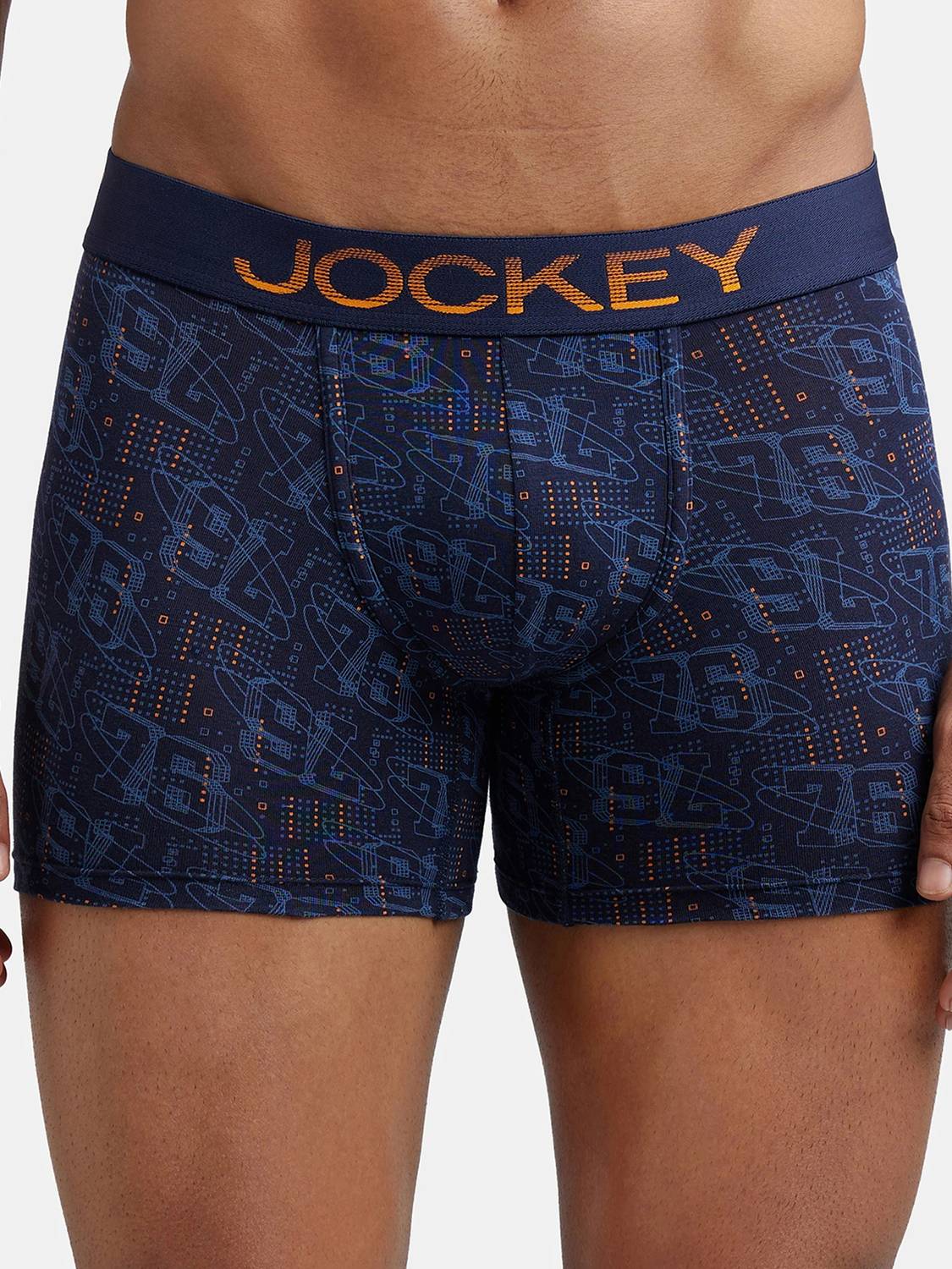 Jockey FP23 Super Combed Cotton Elastane Stretch Printed Trunk with Ultrasoft Waistband - Navy & Autumn Glory. Bright neon colours dominate this range with designs that won? be missed from a mile away. The Pop Colour Collection is tailor made for the man who marches to the beat of his own drum. Super Combed Cotton Elastane Stretch Fabric ,Fabric Composition : Cotton and Elastane ,Engineered to Prevent Ride Up ,Ultrasoft and Durable Waistband ,All Over Print Design ,Label Free for All Day Comfort. Gentle wash 40C, Do not bleach, Do not wring, Tumble dry low, Do not iron, Do not iron, Do not dry clean, Wash inside out with like colours.