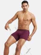Jockey IC25 Tencel Micro Modal Cotton Elastane Stretch Solid Trunk with Natural StayFresh Properties - Wine Tasting. Exquisitely soft and elegantly sleek -the International Collection exhibits beautiful craftsmanship, using only the finest materials. This range is for the man who won? settle for anything less, inside or out. Environment Friendly Micro Modal Fiber ,Fabric Composition : Tencel Micro Modal, Cotton and Elastane ,Natural Stayfresh Anti-Microbial Properties to Keep You Fresh Throughout the Day ,Internal Breathable Mesh Pouch ,Engineered to Prevent Ride Up ,Ultrasoft and Durable Waistband ,Label Free for All Day Comfort. Gentle wash 40C, Do not bleach, Do not wring, Tumble dry low, Do not iron, Do not iron, Do not dry clean, Wash inside out with like colours.