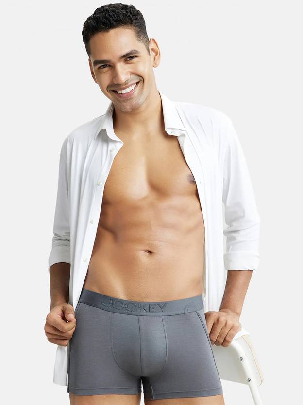 Jockey IC25 Tencel Micro Modal Cotton Elastane Stretch Solid Trunk with Natural StayFresh Properties - Gun Metal. Exquisitely soft and elegantly sleek -the International Collection exhibits beautiful craftsmanship, using only the finest materials. This range is for the man who won? settle for anything less, inside or out. Environment Friendly Micro Modal Fiber ,Fabric Composition : Tencel Micro Modal, Cotton and Elastane ,Natural Stayfresh Anti-Microbial Properties to Keep You Fresh Throughout the Day ,Internal Breathable Mesh Pouch ,Engineered to Prevent Ride Up ,Ultrasoft and Durable Waistband ,Label Free for All Day Comfort. Gentle wash 40C, Do not bleach, Do not wring, Tumble dry low, Do not iron, Do not iron, Do not dry clean, Wash inside out with like colours.
