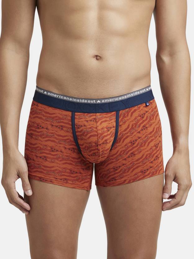 Jockey US63 Super Combed Cotton Elastane Stretch Printed Trunk with Ultrasoft Waistband - Autumn Glaze. Every piece in the USA Originals Collection is a tribute to Americana. This range is designed for optimum comfort with signature American styling, the right fit for a confident free-spirit. Super Combed Cotton Elastane Stretch Fabric ,Fabric Composition : Cotton and Elastane ,Engineered to Prevent Ride Up ,Ultrasoft and Durable Waistband ,All Over Print Design ,Label Free for All Day Comfort. Gentle wash 40C, Do not bleach, Do not wring, Tumble dry low, Do not iron, Do not iron, Do not dry clean, Wash inside out with like colours. This product comes in a variety of pattern & design. Image shown here is for representation only. Actual pattern & design may vary.