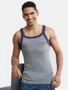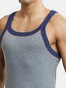 Jockey US54 Super Combed Cotton Rib Square Neck Gym Vest with Graphic Print - Grey Melange & Ink Blue. Every piece in the USA Originals Collection is a tribute to Americana. This range is designed for optimum comfort with signature American styling, the right fit for a confident free-spirit. 100% Super Combed Cotton Rib Fabric ,Fabric Composition : Cotton ,Square Neck ,Sleeveless ,Graphic Print Design ,Label Free for All Day Comfort. Gentle wash 40C, Do not bleach, Do not wring, Tumble dry low, Do not iron, Do not iron, Do not dry clean, Wash inside out with like colours. This product comes in a variety of shoulder strap colour combinations. Image shown here is for representation only. Actual shoulder strap colour combination may vary.