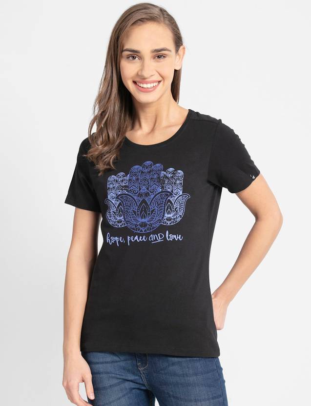JOCKEY Printed Women Round Neck Black T-Shirt