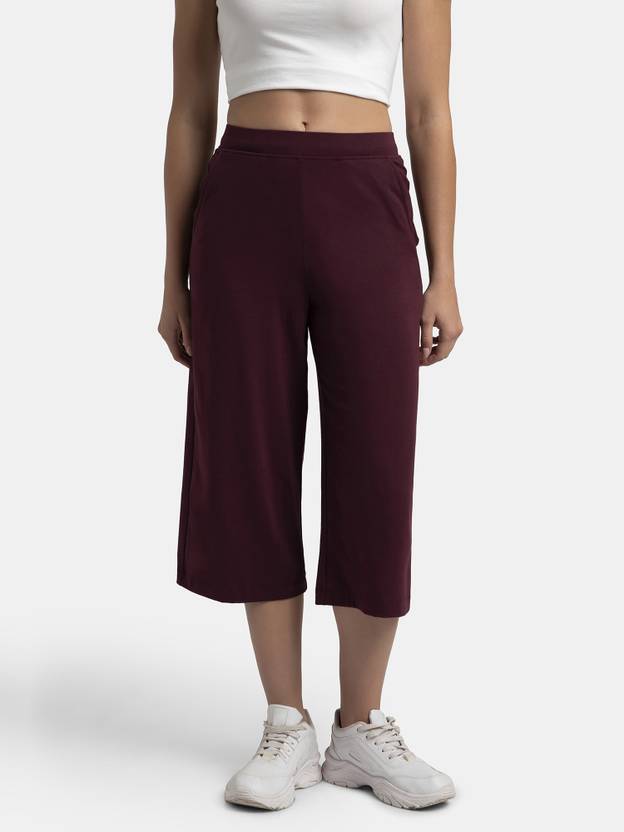 Jockey A150 Super Combed Cotton Rich Elastane Stretch Relaxed Fit Culottes - Wine Tasting. Created with just the right blend of functionality, style, and comfort, the Athleisure Collection is the perfect fit for workouts, travel, or just a relaxing night in. This range is designed for the woman who? always on the go. Super Combed Cotton Rich Elastane Stretch Fabric ,Fabric Composition : Cotton, Polyester and Elastane ,Relaxed Fit ,Convenient Side Pockets ,Zipper Media Pocket ,Comfortable Waistband with Drawstrings ,Label Free for All Day Comfort. Gentle wash 40C, Do not bleach, Do not wring, Do not tumble dry, Low iron, Low iron, Do not dry clean, Wash inside out with like colours.