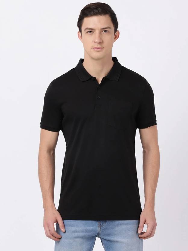 JOCKEY Solid Men Polo Neck Black T-Shirt