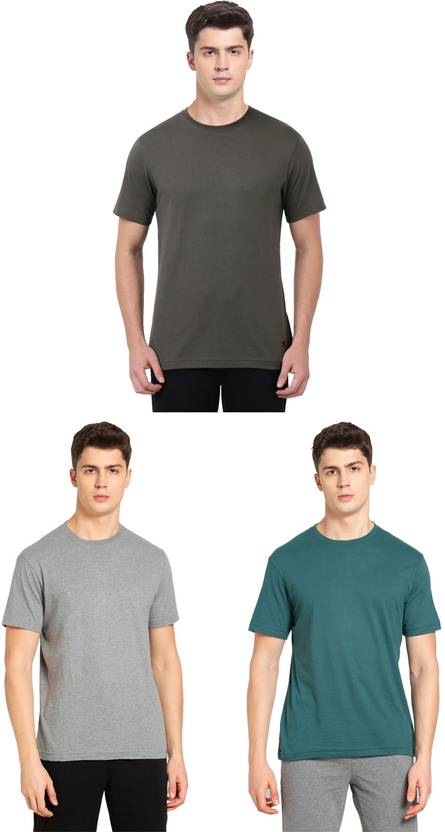 JOCKEY Solid Men Round Neck Dark Green, Grey, Green T-Shirt