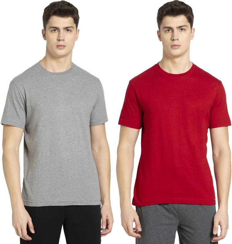 JOCKEY Pack of 2 Men Solid Round Neck Pure Cotton Grey, Red T-Shirt