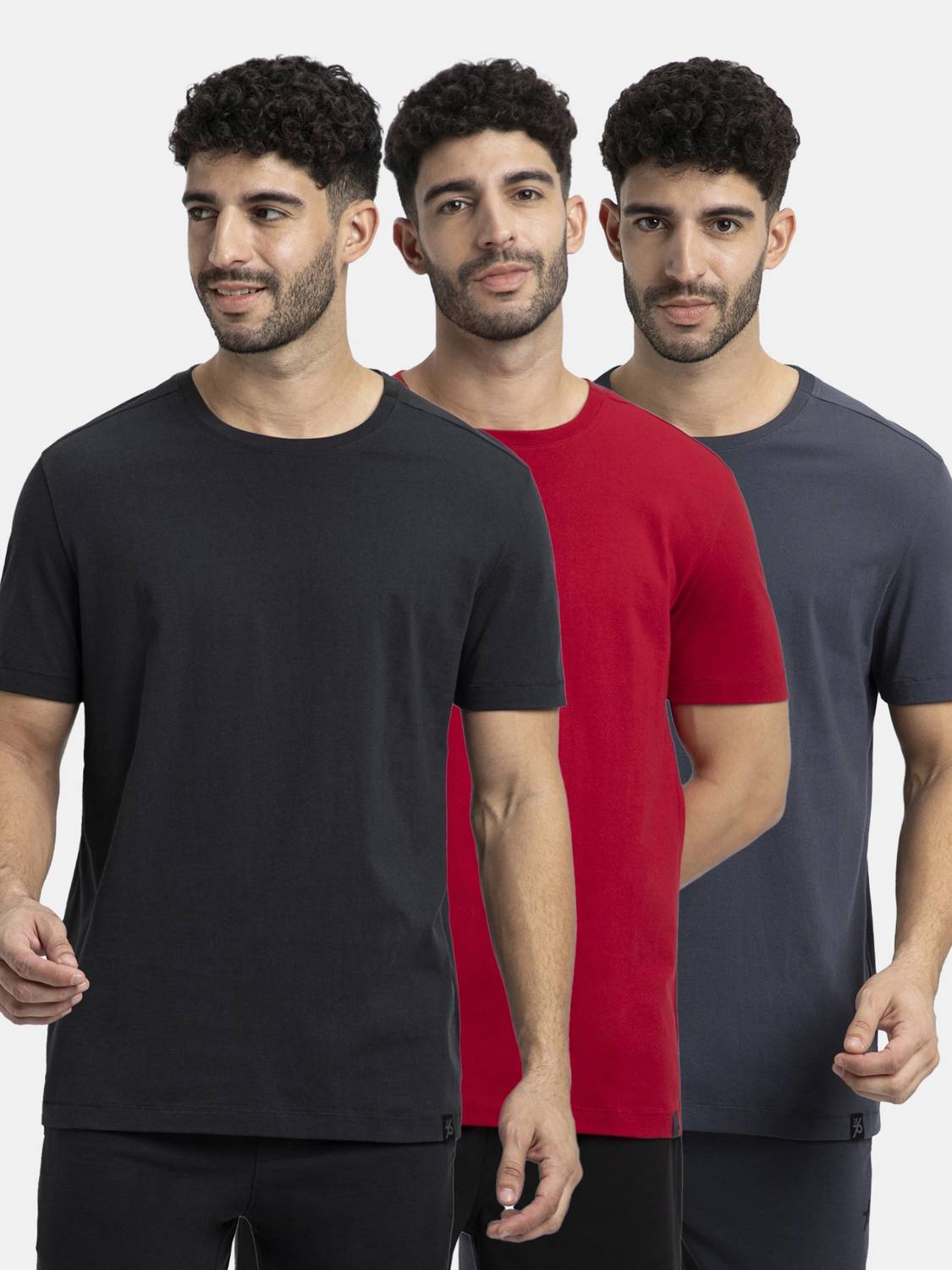 Jockey AM16 Super Combed Cotton Round Neck Half Sleeve T-Shirt - Black, Graphite & Shanghai Red (Pack of 3). 100% super combed cotton fabric, Fabric Composition : 100% Cotton, Round Neck, Half Sleeve<, Label Free for All Day Comfort. Gentle wash 40C, Do not bleach, Do not wring, Tumble dry low, Medium iron, Do not dry clean, Wash inside out with like colours, Do not iron on label/print.
