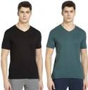 Pack of 2 Men Solid V Neck Pure Cotton Black, Green T-Shirt