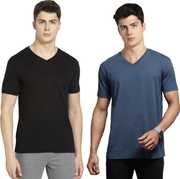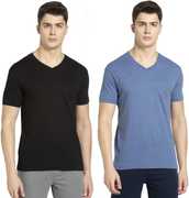 JOCKEY Solid Men V Neck Black, Green T-Shirt