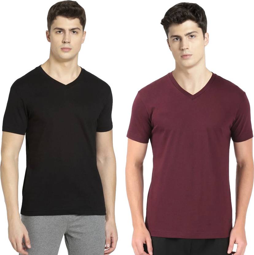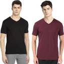 JOCKEY Pack of 2 Men Solid V Neck Pure Cotton Black, Maroon T-Shirt