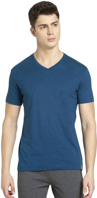 JOCKEY Solid Men V Neck Blue T-Shirt