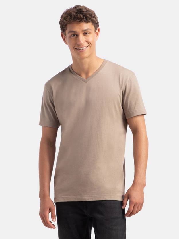 Jockey 2726 Super Combed Cotton Rich Solid V Neck Half Sleeve T-Shirt - Desert Taupe. Created with just the right blend of functionality, style, and comfort, the Athleisure Collection is the perfect fit for workouts, travel, or just a relaxing night in. This range is designed for the man whos always on the go. Super Combed Cotton Rich Fabric, Fabric Composition : Cotton and Polyester, V Neck Styling, Half Sleeve, Label Free for All Day Comfort. Gentle wash 40C, Do not bleach, Do not wring, Tumble dry low, Medium iron, Do not dry clean, Wash inside out with like colours. Do not iron on label.