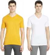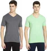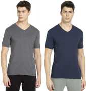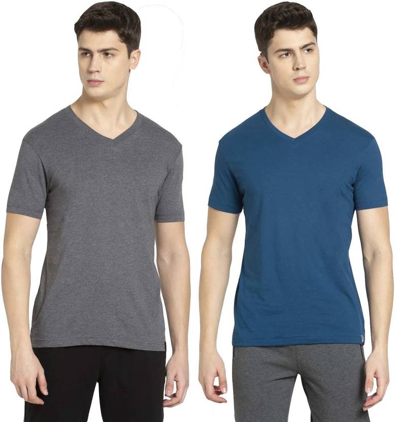 Jockey Athleisure Men Solid/Plain Multicolor98 V Neck Half Sleeve T-Shirt - Pack of 2 (#2726). Material Composition : 80% Cotton, 20% Polyester. Super combed Cotton Rich fabric. Ribbed round neck to prevent sagging. Regular fit. Label free for all day comfort. S=80-85 cm (32-34 inch), M=90-95 cm (36-38 inch), L=100-105 cm (40-42 inch), XL=110-115 cm (44-46 inch), XXL=120-125 cm (48-50 inch)