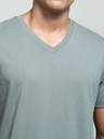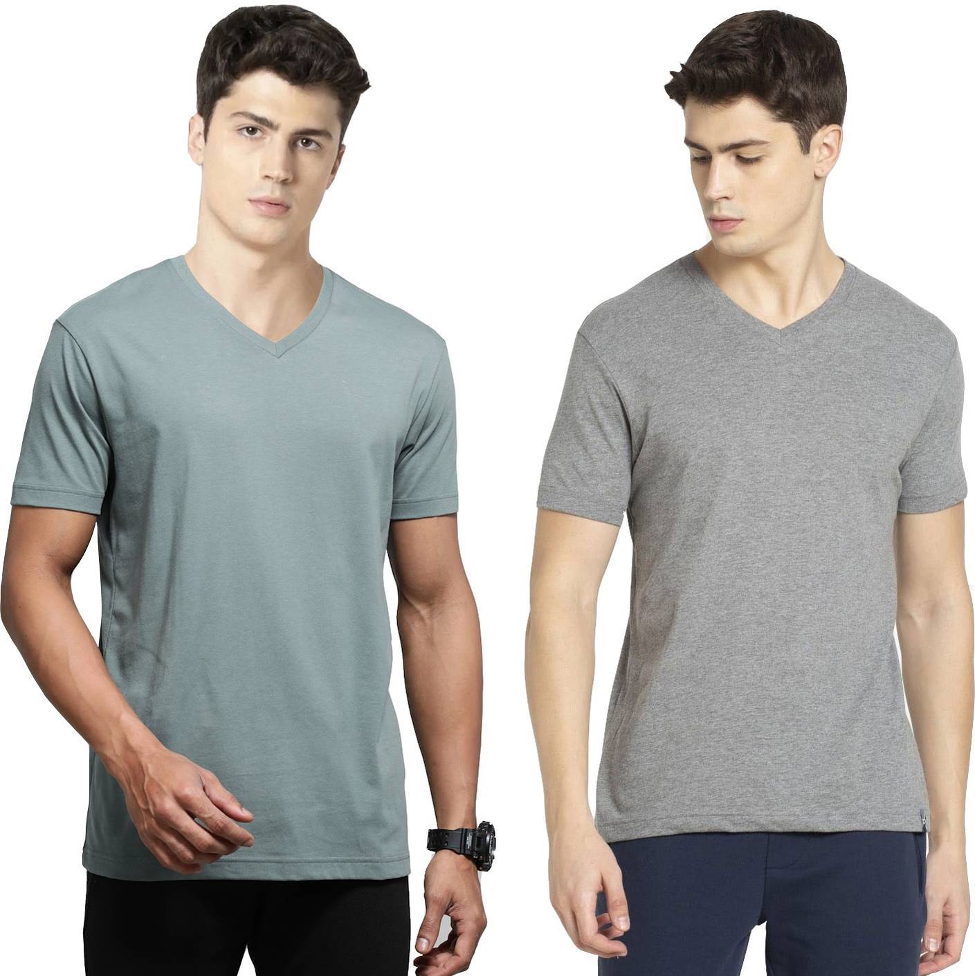 Ribbed V-neck prevents sagging.