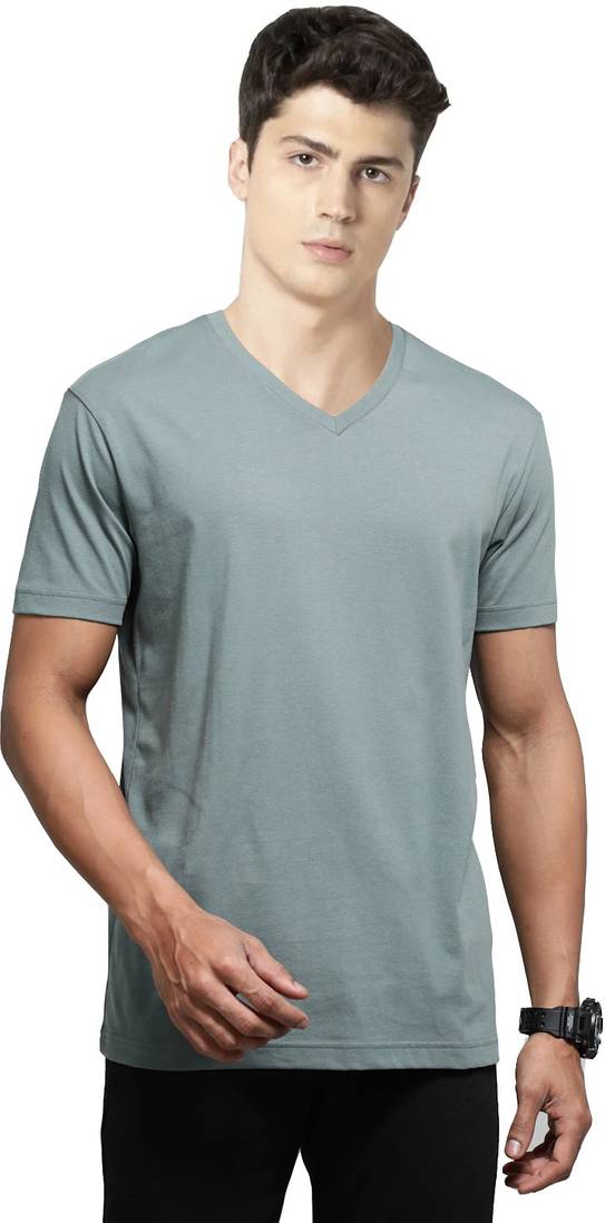 JOCKEY Solid Men V Neck Green T-Shirt