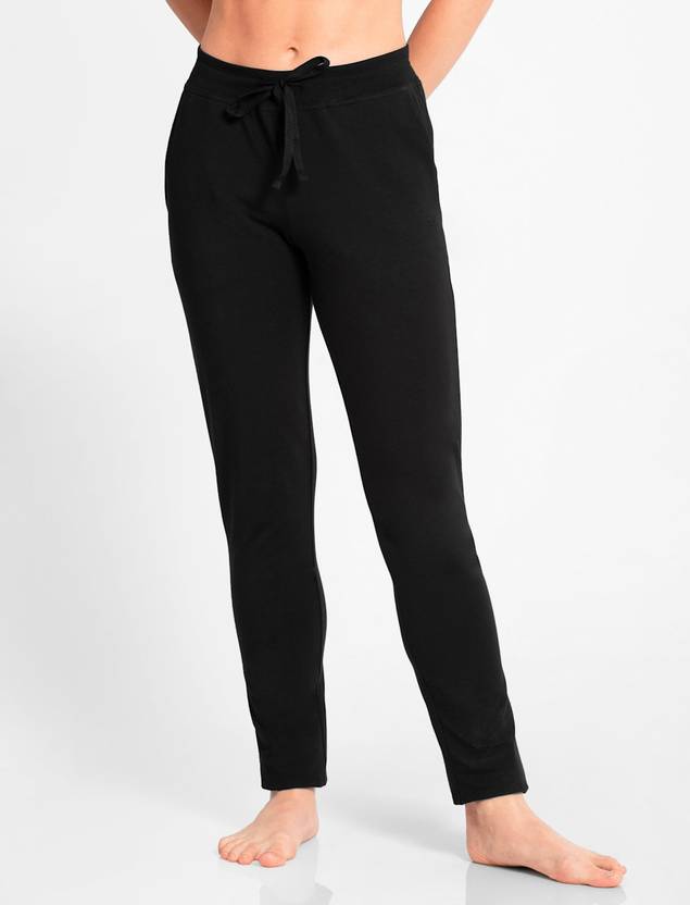 Athleisure Plain/Solid Women's Black Slim Fit Track Pants with Side Pockets - Pack of 1 (#1301). Fabric Details : Cotton and Elastane. Super combed cotton elastane stretch fabric. Slim Fit. Soft elasticized waistband with flat drawstring. label free for all day comfort. Authentic brand logo embroidery. To be worn as lounge wear, leisurewear and active wear - for all purpose use.
