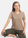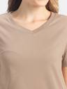 Jockey AW89 Super Combed Cotton Rich Fabric Relaxed Fit V-Neck Half Sleeve T-Shirt - Desert Taupe. Created with just the right blend of functionality, style, and comfort, the Athleisure Collection is the perfect fit for workouts, travel, or just a relaxing night in. This range is designed for the woman whos always on the go. Super Combed Cotton Rich Fabric, Fabric Composition : Cotton and Polyester, Relaxed Fit, V Neck, Label Free for All Day Comfort Gentle wash 40C, Do not bleach, Do not wring, Tumble dry low, Low iron, Do not dry clean, Wash with like colours. Do not iron on label.