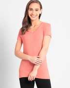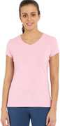 JOCKEY Women Solid V Neck Pure Cotton Pink T-Shirt