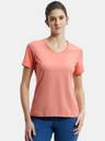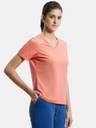 Jockey 1359 Super Combed Cotton Elastane Stretch Regular Fit Solid V Neck Half Sleeve T-Shirt - Blush Pink. Created with just the right blend of functionality, style, and comfort, the Athleisure Collection is the perfect fit for workouts, travel, or just a relaxing night in. This range is designed for the woman who? always on the go. Super Combed Cotton Elastane Stretch Fabric ,Fabric Composition : Cotton and Elastane ,Regular Fit ,V Neck ,Half Sleeve ,Label Free for All Day Comfort. Gentle wash 40C, Do not bleach, Do not wring, Tumble dry low, Low iron, Low iron, Do not dry clean, Wash inside out with like colours. Do not iron on label.
