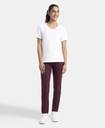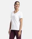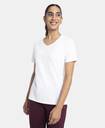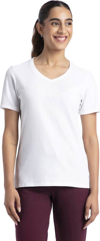 Jockey 1359 Super Combed Cotton Elastane Stretch Regular Fit Solid V Neck Half Sleeve T-Shirt - White. Created with just the right blend of functionality, style, and comfort, the Athleisure Collection is the perfect fit for workouts, travel, or just a relaxing night in. This range is designed for the woman who? always on the go. Super Combed Cotton Elastane Stretch Fabric ,Fabric Composition : Cotton and Elastane ,Regular Fit ,V Neck ,Half Sleeve ,Label Free for All Day Comfort. Gentle wash 40C, Do not bleach, Do not wring, Tumble dry low, Low iron, Low iron, Do not dry clean, Wash inside out with like colours. Do not iron on label.