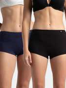 Jockey SS04 High Coverage Super Combed Cotton Elastane Stretch Boy Leg With Concealed Waistband and StayFresh Treatment - Black & Classic Navy (Pack of 2). Elegance and style meet comfort and quality with Jockeys Fashion Essentials Collection. This vibrant range offers multiple colors, prints, and designs and is the right fit for the woman who refuses to compromise on style. Super Combed Cotton Elastane Stretch Fabric, Fabric Composition : Cotton and Elastane, StayFresh Treatment with Antimicrobial Properties to Help You Stay Fresh Throughout the Day, High Coverage, Mid Waist, Ultrasoft and Durable Waistband, Label Free for All Day Comfort. Gentle wash 40C, Do not bleach, Do not wring, Tumble dry low, Do not iron, Do not dry clean, Wash with like colours.
