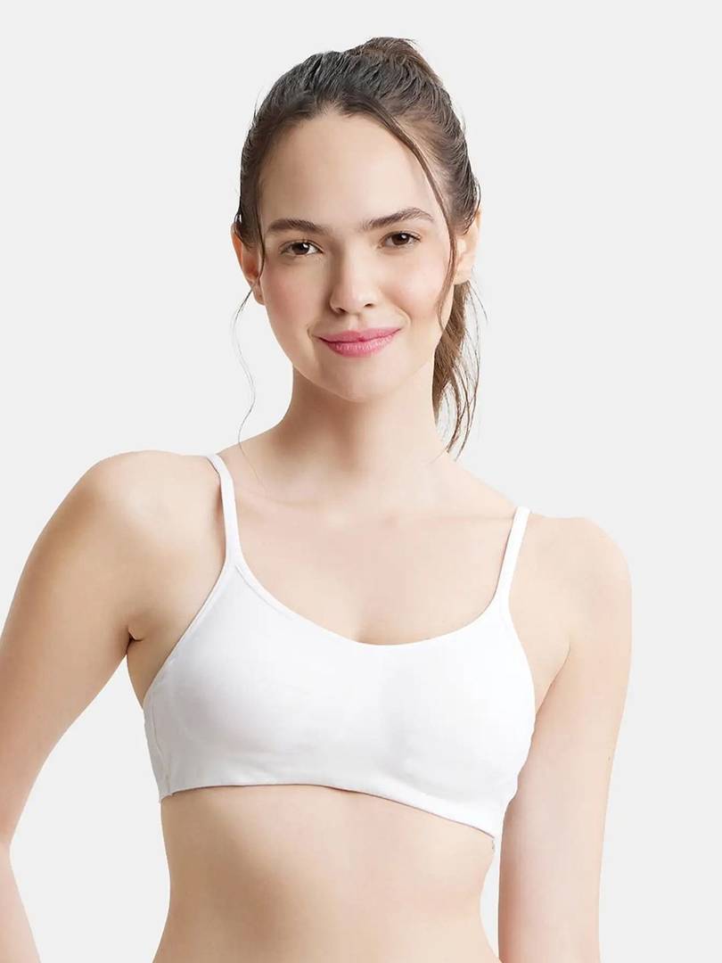 Jockey SS12 Wirefree Non Padded Super Combed Cotton Elastane Stretch Full Coverage Beginners Bra with Adjustable Straps - White. Elegance and style meet comfort and quality with Jockey? Fashion Essentials Collection. This vibrant range offers multiple colors, prints, and designs and is the right fit for the woman who refuses to compromise on style. Super Combed Cotton Elastane Stretch Fabric ,Fabric Composition : Cotton and Elastane ,Full Coverage Bra ,Wirefree and Non-Padded ,Soft and Smooth Adjustable Straps ,Double Layered Cups, Provide Modesty and Excellent Cup Fit ,Camisole Front Styling Gives Additional Coverage ,Label Free for All Day Comfort ,Based on the Size Band Of the Bra, the Number Of Hook and Eye Varies for Better Support. Hand wash, cold, Do not bleach, Do not wring, Drip dry in shade, Do not iron, Do not iron, Do not dry clean, Wash with like colours.